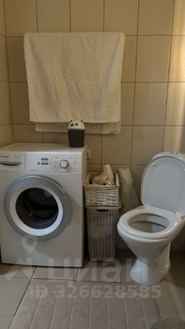 В квартире есть всё необходимое для комфортного проживания. На кухне установлена мебель и техника, включая холодильник и стиральную машину. В комнате также есть необходимая мебель для жизни. Совмещённый санузел оборудован ванной
