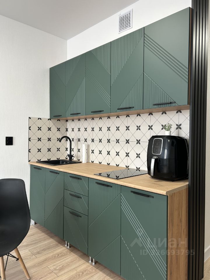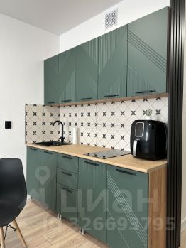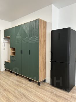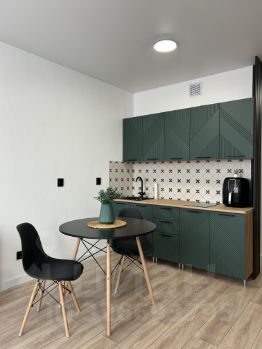 В студии ремонт в светлых тонах и новая мебель, что создает уютную атмосферу. В комнате установлен удобный угловой диван и вместительный шкаф для хранения вещей и обуви. Кухня оборудована современной техникой, включая холодильник, варочную панель, аэрогриль.
