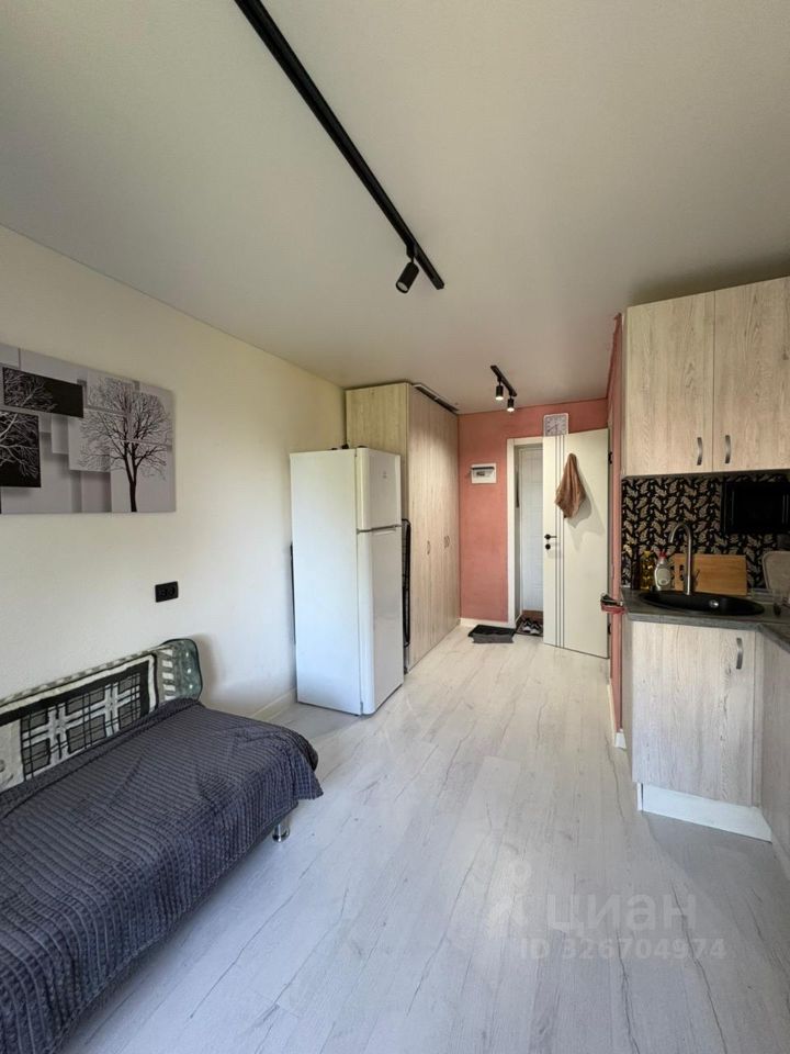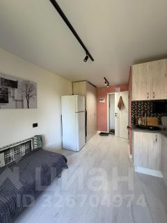 В квартире сделан уютный ремон. Пространство студии гармонично организовано: уютная зона для отдыха и сна, кухня с необходимой техникой, включая холодильник и стиральную машину.