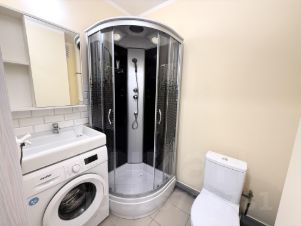 В квартире есть: стиральная машинка, душевая кабина, холодильник, плита, вытяжка, кухонный гарнитур, диван, шкаф, стол; стеллаж, табуретки. Вся мебель и техника новая.
