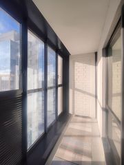 Сама квартира расположена на 14 этаже, имеет огромную лоджию с видом во двор. В квартире установлен кухонный гарнитур, есть холодильник, стол, диван, в санузле установлена стиральная машинка и душевая кабина.