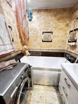 Кухня просторная, газифицирована, оборудована угловым гарнитуром, имеет обеденную зону. Санузел раздельный. Ванная и туалет отделаны кафелем. Подводки воды и трубы канализации заменены, установлены счетчики ХГВС. В прихожей смонтирован вместительный шкаф-купе с зеркальными дверками.