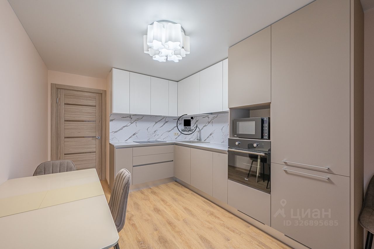 Есть все необходимое для комфортного проживания: кухонный гарнитур, варочная панель, духовой шкаф, посудомоечная машина, холодильник, микроволновка, вытяжка, электрический чайник, стиральная машина, кровать, диван, кондиционер.
