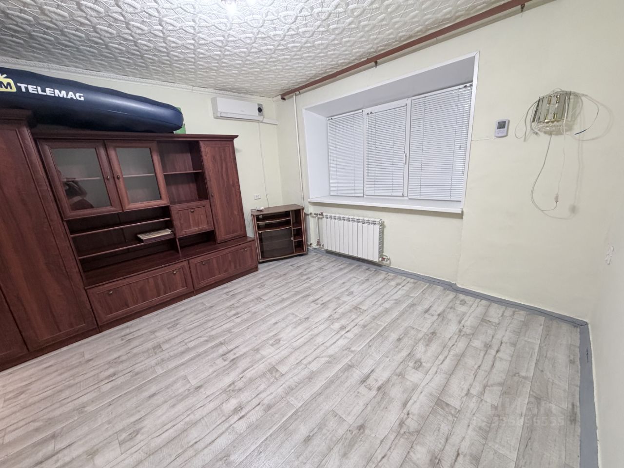 В квартире сделан косметический ремонт, она полностью готова к комфортному проживанию. В комнате и на кухне есть вся необходимая мебель. Для удобства арендаторов установлены кондиционер, холодильник и стиральная машина. Ванная комната оборудована душевой кабиной, что добавляет комфорта.