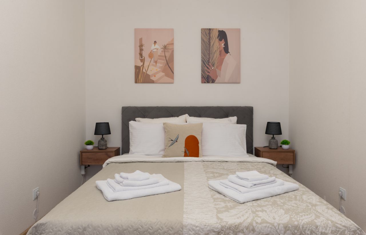 - полноценная двухспальная кровать 160х200 с новым ортопедическим матрасом комфортной жесткости, уже застеленная к Вашему приходу.