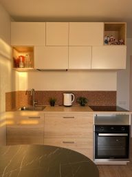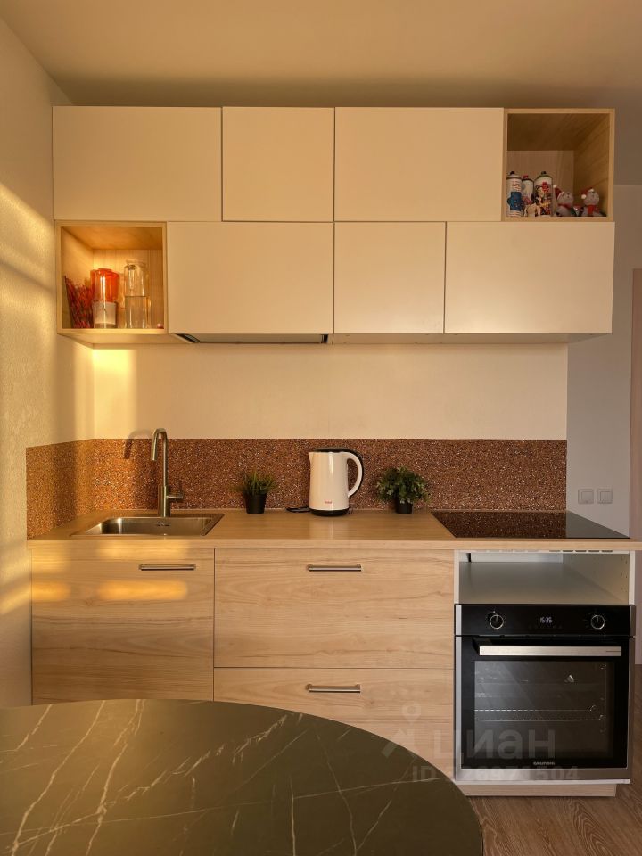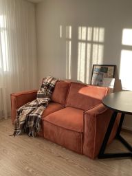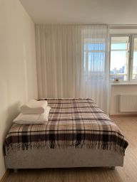 В квартире есть все необходимое для жизни-кухня с индукционной варочной поверхностью, духовой шкаф,холодильник, микроволновая печь, чайник, посуда, стиральная машина. Спальное место-кровать 140*200 с ортопедическим матрасом, и раскладывающийся диван. Шкаф-купе.Два стола, комплект табуретов.