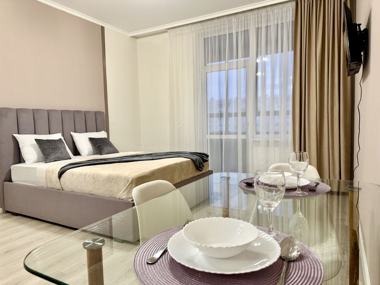 Просторная, уютная и современная студия находится на 7-ом этаже в клубном доме на Родонитовой. В ней есть всё необходимое для комфортного проживания. Квартира расположена недалеко от центра города в районе Ботанический.