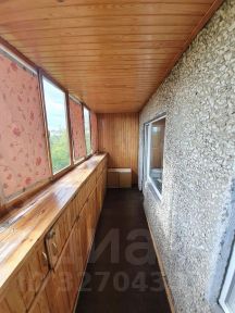 Огромная застекленная лоджия, обшитая деревом с ящиками для хранения.