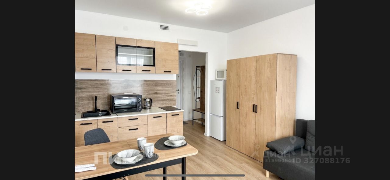 Студия с ремонтом, полностью готова для проживания, вся необходимая мебель и техника.