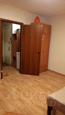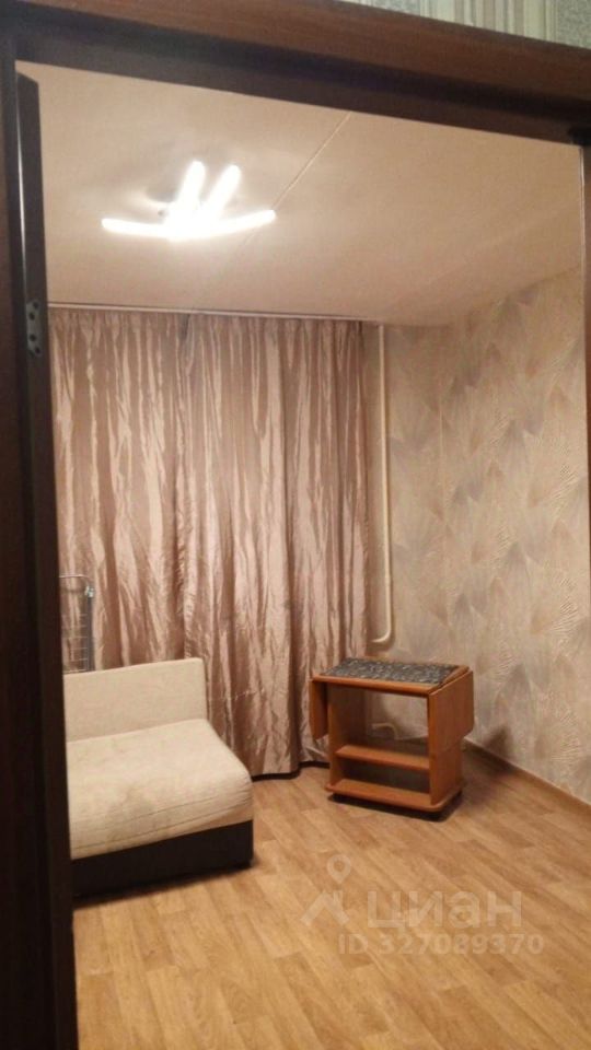Квартира расположена на четвёртом этаже кирпичного дома. В комнате выполнен косметический ремонт, установлен шкаф и диван. Из техники холодильник и стиральная машина.