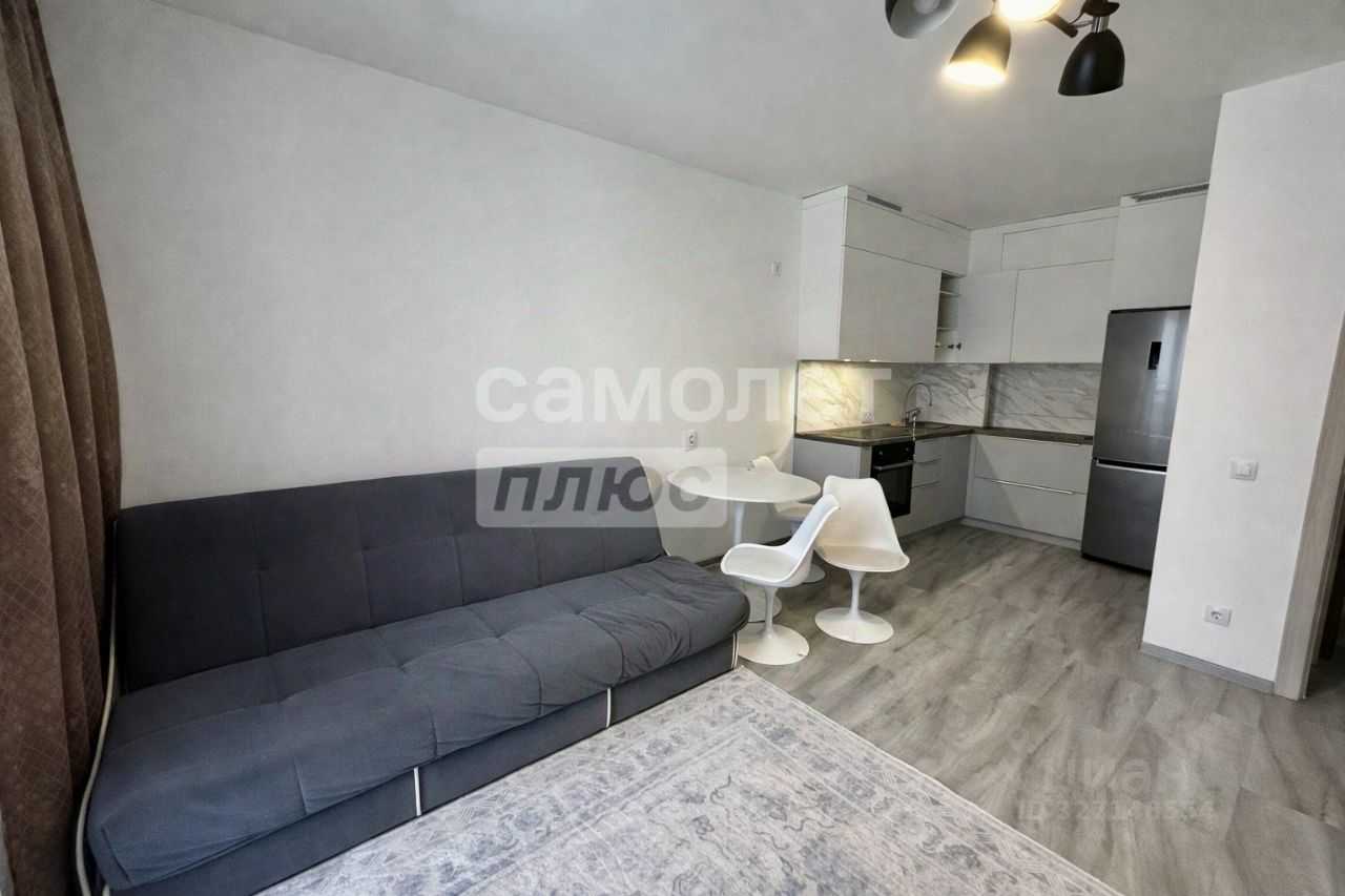 Современная кухня-гостиная с полным комплектом встроенной техники (варочная поверхность, вытяжка, встроенный духовой шкаф, двухкамерный холодильник) и стильным кухонным гарнитуром с обеденной зоной, область гостиной обставлена корпусной мебелью со смарт телевизором и двуспальным диваном. Уютная спальня с качественной мебелью. Вместительная прихожая со встроенным шкафом. Современная ванная комната в кафельной отделке с душевой, установлена стиральная машина автомат.