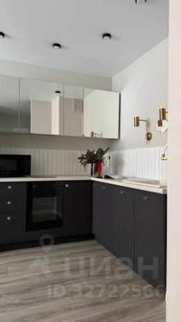 Квартира имеет мебель и технику для жизни: кровать двухспальная, диван, кухонный гарнитур с встроенной техникой(посудомоечная машина, варочная панель, холодильник, вытяжка, чайник, микроволновка, духовка) стол и 2 стула, шкаф, гардеробная, стиральная машина.
