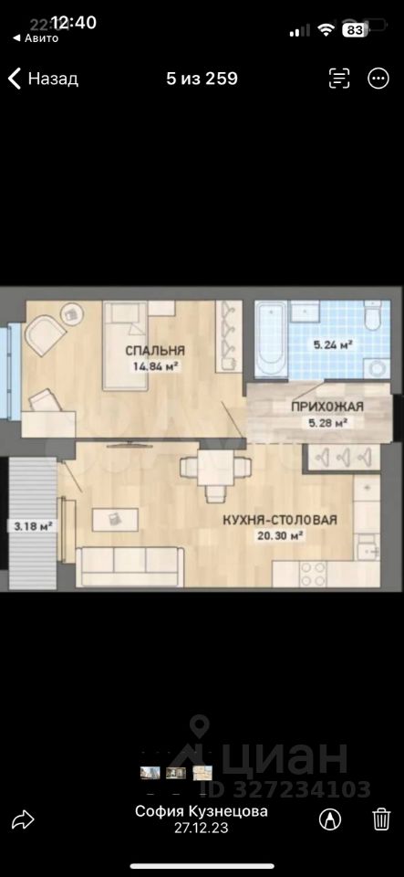 Общая площадь квартиры — 48 кв. М, с просторной кухней в 20.3 кв. м и жилой площадью 14.84 кв. м. Квартира расположена на 6 этаже 26-этажного дома, окна выходят во двор, что добавляет уединённости и спокойствия.