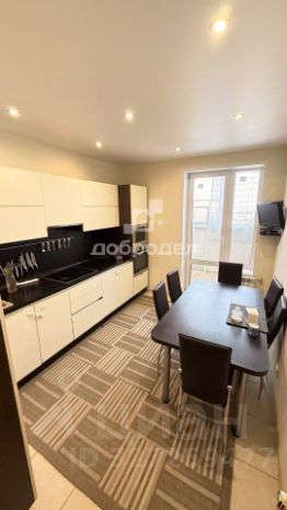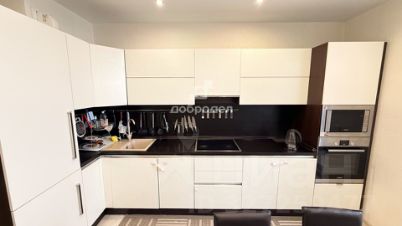 Кухня: кухонный гарнитур, оснащен встроенными варочной поверхностью и духовым шкафом, СВЧ -печь, посудомоечной машиной, холодильник, ТВ, стол, стулья, вся необходимая посуда.