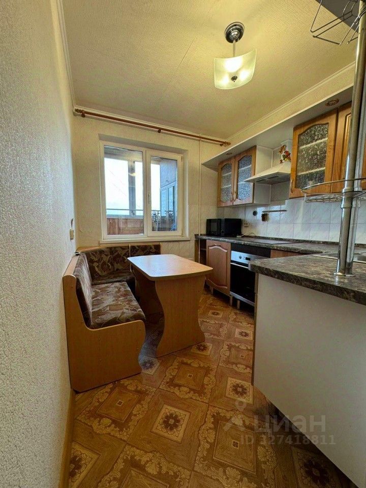 Квартира имеет удобную изолированную планировку: посередине квартиры кухня, квадратной формы, где расположились кухонный гарнитур, обеденная зона, холодильник, при входе в квартиру гардеробная система, слева просторная гостиная с выходом на огромную застекленную лоджию, справа от кухни уютная спальня 10кв.м с раскладным диванчиком.