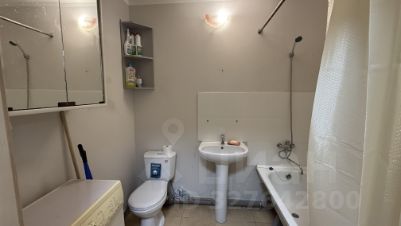 Санузел совмещенный, оборудован ванной и стиральной машиной. В комнате установлена современная кровать и телевизор.