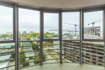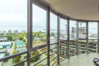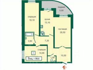 Общая площадь - 100 кв.м. Три комнаты, два санузла. Между кухней и гостиной стены нет. Лоджия - 9 кв.м., выходит на западную сторону.