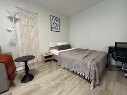 Квартира рассчитана на размещение до четырёх гостей. Имеются шторы блэкаут. Гостям предоставляются постельное бельё и полотенца.