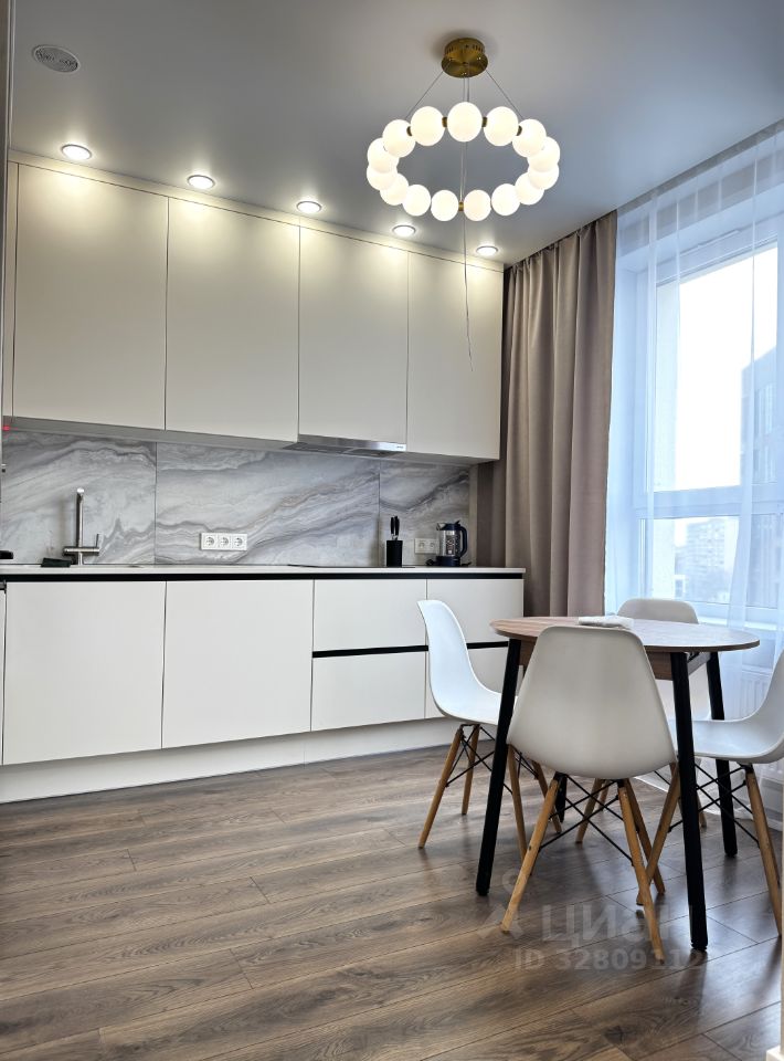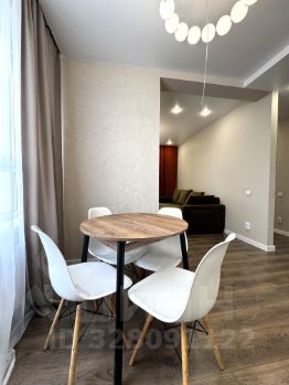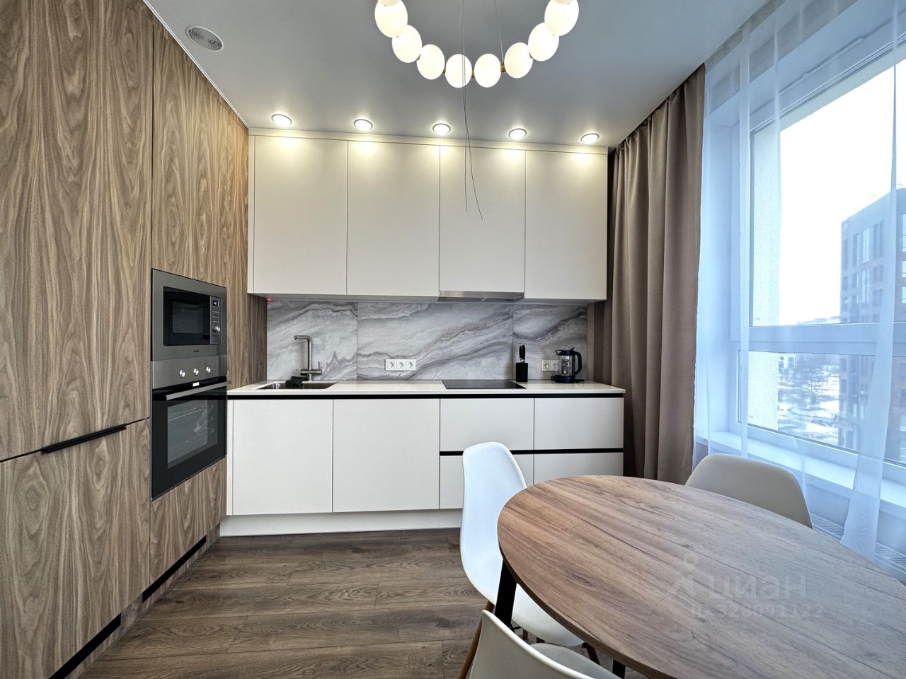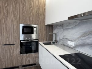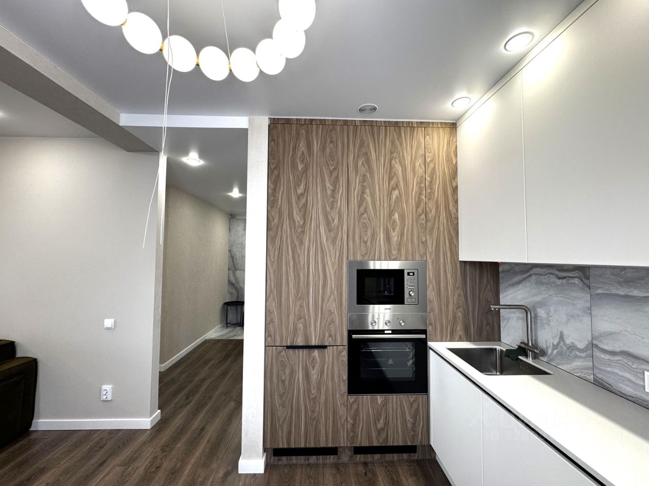 Квартира на 8 этаже, в доме 4 лифта, есть колясочная. 5 квартир на этаже. В квартире сделан свежий капительный ремонт из современных высококачественных материалов. Никто не жил. Натяжные потолки, ламинат высокого класса, декоративная штукатурка на стенах, керамогранит в санузлах. Планировка: общая площадь 47 кв.м - кухня-гостиная, спальня, два санузла, лоджия. В санузлах теплые полы. Вся мебель и техника абсолютно новые. В кухне холодильник, микроволновка, духовой шкаф, вытяжка, варочная поверхность Gorenje, обеденный стол и стулья. Есть посуда, чайник. Стиральная машина, гладильная доска. Шкафы - в прихожей, гостиной, спальне. Диван в гостиной.