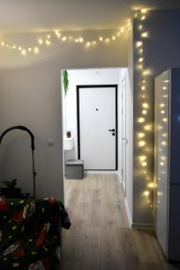 В студиях практически нет лишнего места, поэтому постарался для вас учесть некоторые детали, которые позволят вам жить комфортнее: сушильная машина, вместо раскладной сушки, шторы блэкаут, чтобы вас не тревожили солнечные лучи, и кондиционер, на случай солнечного и жаркого лета