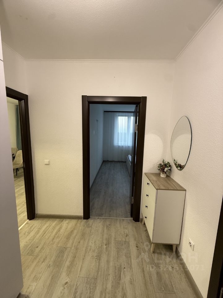Сдаётся уютная евродвушка квартира с евроремонтом в современном доме. Общая площадь — 43 кв. м, большая комната — 15 кв. м, просторная кухня — 18 кв. м. Квартира расположена на 12 этаже 26-этажного блочного дома, построенного в 2015 году. Высота потолков — 2,6 метра. Из окон открывается шикарный вид на лес и дорогу.