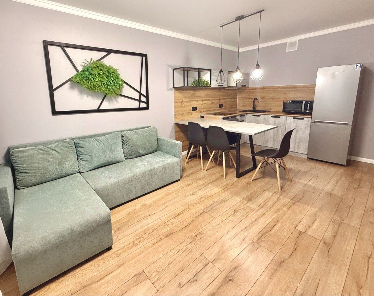 Функциональная планировка: кухня-гостиная 17 кв.м., спальня 15 кв.м., гардеробная с системой хранения, совмещенный санузел.