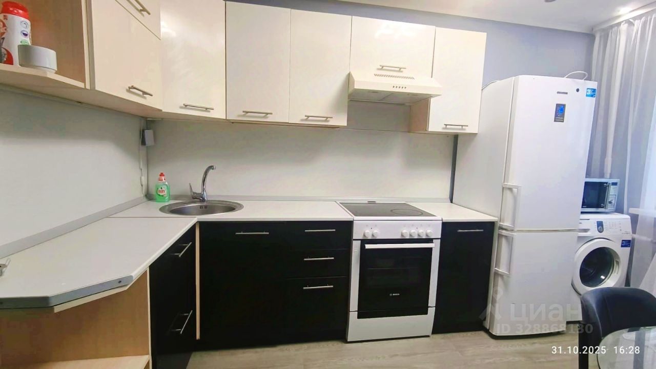 Квартира оснащена всей необходимой для проживания техникой и мебелью: кухонный гарнитур, стол и стулья, диван, шкафы,установлена новая кровать с ортопедическим матрасом . Техника: Холодильник, варочная плита с духовкой,микроволновая печь, стиральная машинка, чайник,большой телевизор, утюг, посуда.
