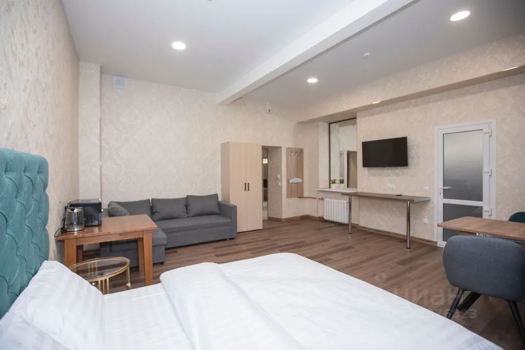 В номере в распоряжении гостей SMART-TV с большим разнообразием каналов, Wi-Fi (бесплатно на всей территории отеля), двуспальная кровать с ортопедическим матрасом, большой стол с мягкими стульями, диван (раскладывается в полноценное 2-е спальное место), СВЧ-печь, чайник, чайные пары, шкаф для одежды.