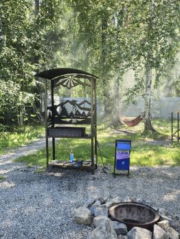 На территории можно пожарить блюда на мангале, посидеть у костра под шум деревьев и шелест листьев, закутавшись в теплые пледы, погреться в сибирском банном чане или русской бане на дровах.