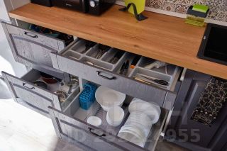 На кухне: плита, духовой шкаф, большой холодильник, посудомоечная машина, микроволновая печь. Много посуды для готовки и сервировки. Красивые бокалы под разные напитки. Из припасов: чай, кофе, соль, сахар, растительное масло, специи и много другой бакалеи.