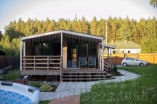 Стильный ремонт, большая приватная территория с закрытой парковкой, мангальной зоной, просторной террасой и видом на молодой лес.