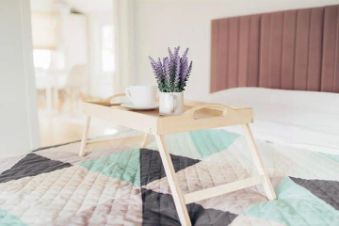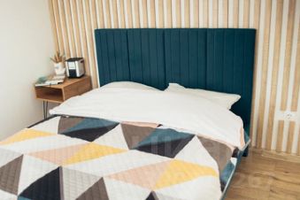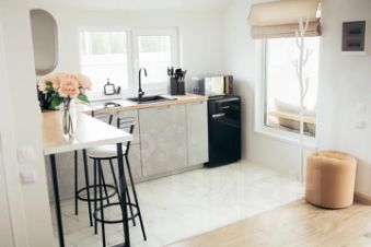 Оборудованная кухня (столовые приборы,кастрюля, сковорода, тарелки, кружки,стаканы, бокалы, электроплита, холодильник, микроволновая печь, чайник, сахар, соль, подсолнечное масло.