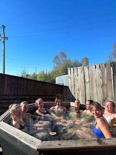 Для полноценного отдыха в доме есть русская баня на дровах с помывочной и душевыми, где вы как следует попаритесь с ароматным веником и сделаете полезные спа процедуры для лица и тела. Кроме того, любители банных процедур могут понежиться в чане на улице.