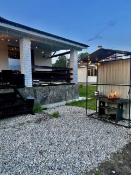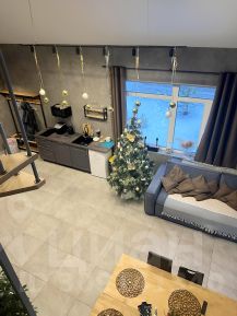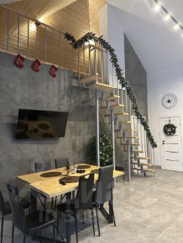 На первом этаже располагается большая кухня-гостиная и мягкая зона отдыха с большими панорамными окнами и выходами на террасу, спальня с большой 2-спальной кроватью, просторная финская сауна, туалет и тропический душ. На втором этаже спальня с 4 спальными местами. На террасе располагается зона отдыха с удобной мебелью и банный чан. У нас есть все для комфортного и приятного отдыха: