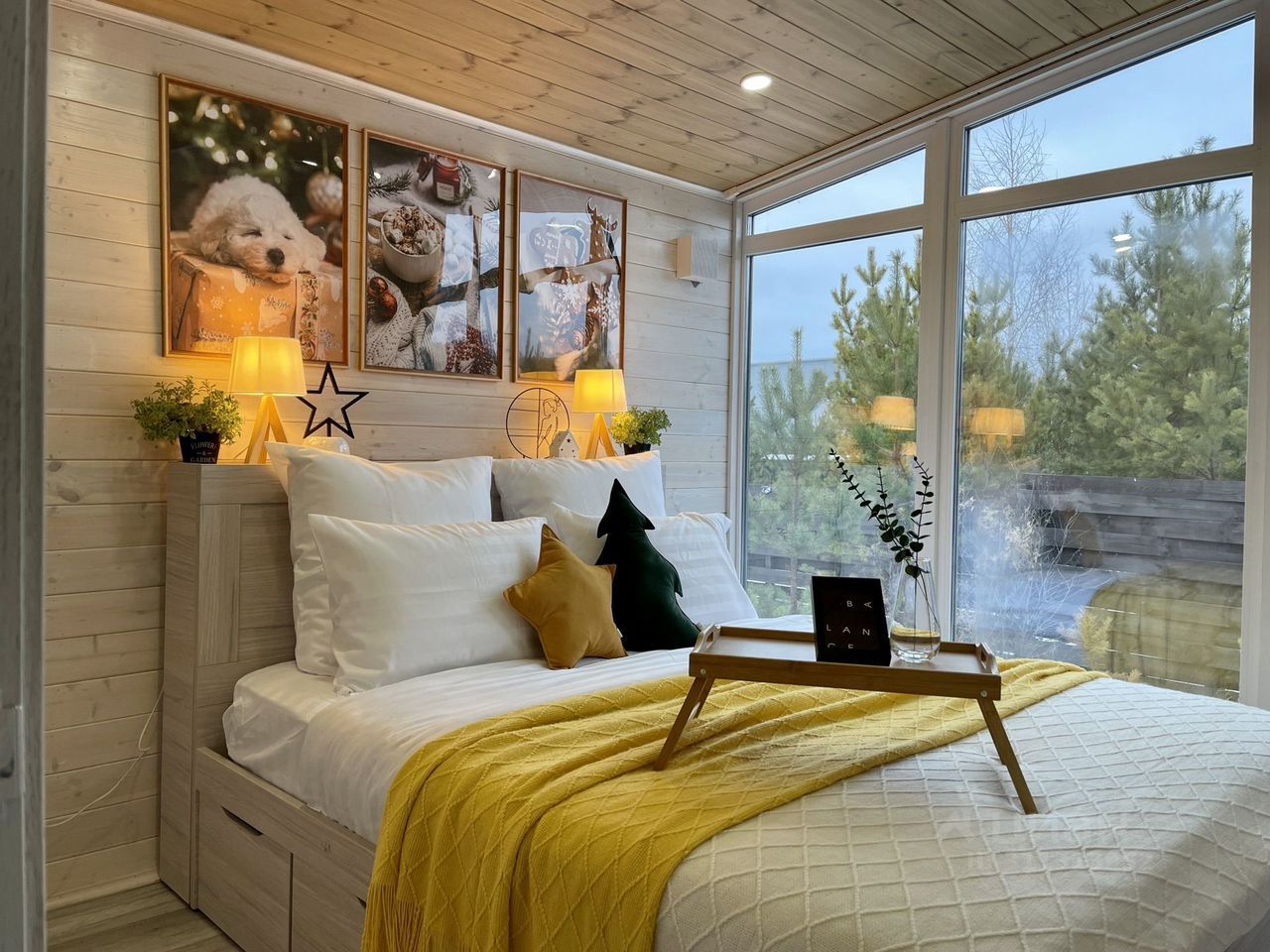 Панорамные окна во всем доме, оснащённая кухня-гостиная, закрытая ограждённая территория, вместительный банный чан и даже детский домик для игр готовы принять вас и всю вашу семью