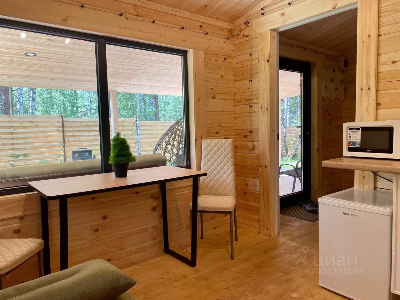 Вы получите незабываемые эмоции единения с природой в домике из дерева среди сосен, елочек и берез. Если Вам повезет то сможете увидеть белочек, которые в множестве живут в нашем лесу.