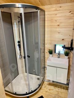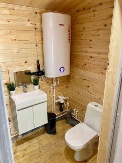 В домике есть большая комната отдыха с кухонной зоной, оснащенной всей необходимой техникой и посудой, а также несколько удобных раскладных диванов. Для любителей банных процедур мы предлагаем баню или банный чан, где можно расслабиться после дня, проведенного на свежем воздухе. Теплые туалеты находятся в отдельном помещении, обеспечивая комфорт в любое время года.