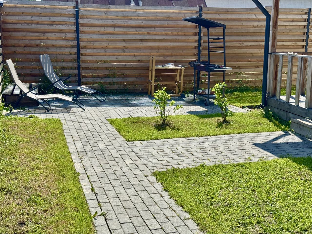Мангальная зона, веранда со столом и диваном.