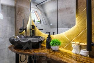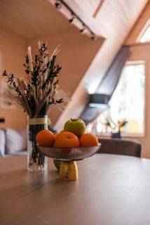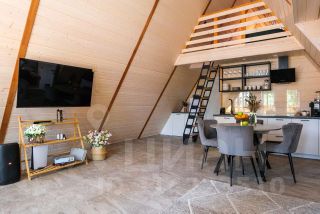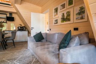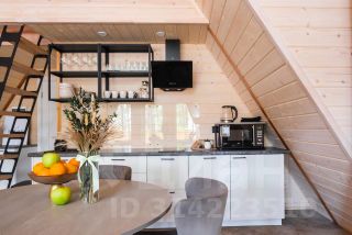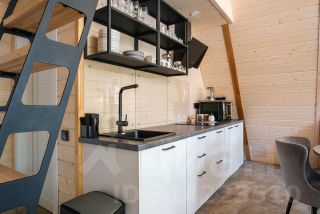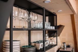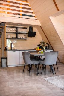 Просторная кухня-гостиная с высотой потолков 5.5 метров укомплектована всем необходимым для Вашего незабываемого отдыха: