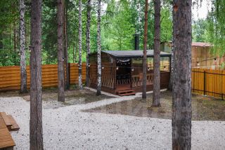 Крытая беседка с мангальной зоной. Решетку, шампура, казан предоставляем. Пользование входит в стоимость аренды. Уголь и розжиг везите свой, либо можно приобрести у нас.