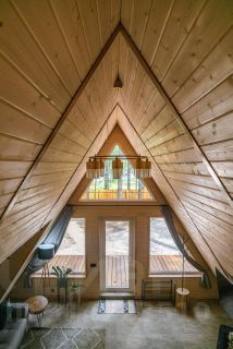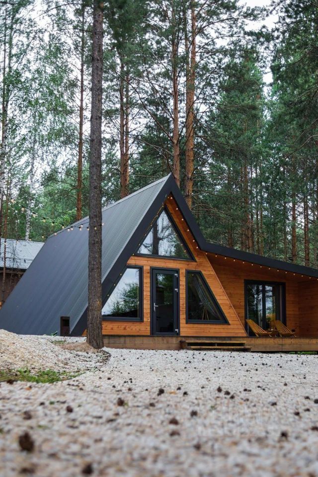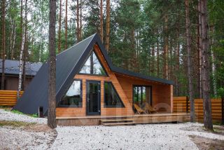 в нашем новом треугольном домике в окружении вековых сосен на берегу Белоярского водохранилища.