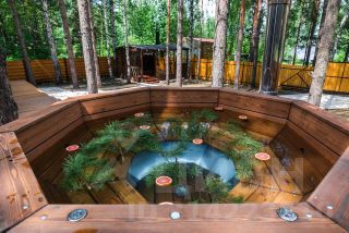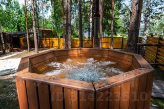Большой банный чан на 8 человек с ГИДРОМАССАЖЕМ и подсветкой. По запросу можем установить или убрать стол по середине(необходимо предупреждать до начала топки). Цена 5000/7000₽ (вс-чт/пт-сб) за одну топку до 35-40 C хватает на 2-3 часа. Дальнейшее поддержание температуры 1000₽\час