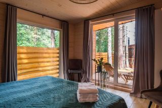 — Две изолированных спальни с двуспальными кроватями 180х200см. Каждая спальня оборудована небольшим TV и местами для хранения, из одной спальни предусмотрен выход на террасу.