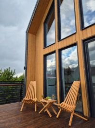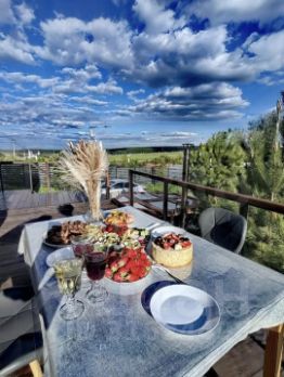 - Кухня и обеденная зона на первом этаже: в комнате имеется кресло-кровать, телевизор, колонка Алиса, обеденный стол на 4-6 гостей (так же имеется такой же дополнительный для удобства). В доме есть wi-fi. На первом этаже теплые полы. Кондиционер!