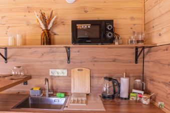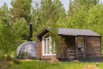 Добро пожаловать в домик 7 — идеальное место для романтического отдыха вдали от городской суеты. Интерьер, выполненный в сочетании теплого дерева и современных бетонных элементов, создает атмосферу комфорта и стиля.