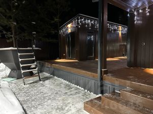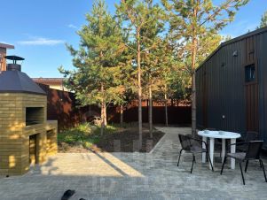 Новый уютный дом с панорамными окнами в соснах, с чаном, парковкой, огорожена территорией (обработана от клещей 04. 05. 2025), мангалом и отдыхом на улице.