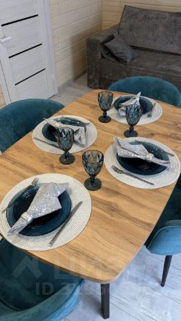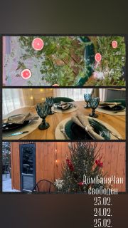 Предусмотрено по два полотенца, шампунь, гель для душа, кроксы, фен. Дом сдается с баней либо чаном. При бронировании бани или чана предоставляются два халата.