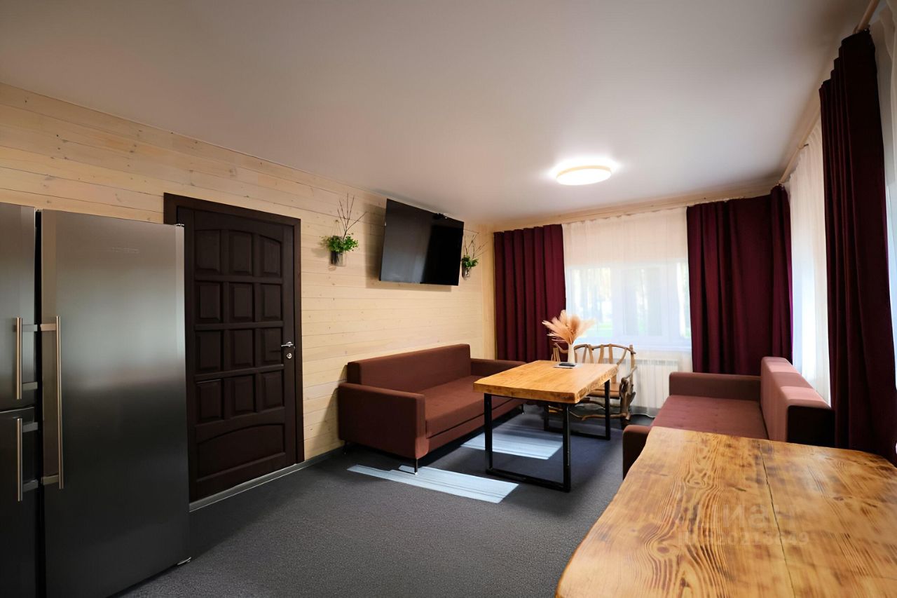 Внутри создано всё для комфортного проживания. Просторная прихожая, санузел с душевой, в которой установлен тёплый пол, банные полотенца, фен и средства личной гигиены обеспечат удобство и уют. Кухня оборудована современной техникой: варочная поверхность, холодильник, микроволновая печь и полный набор посуды — всё, что нужно для приготовления любимых блюд. За большим обеденным столом легко размещаются до восьми человек, что делает это пространство идеальным для дружеских встреч и семейных ужинов.