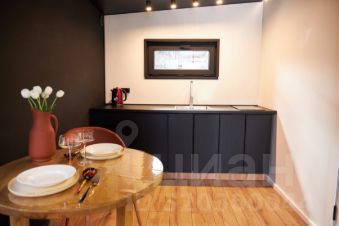 * на кухне: чайник, холодильник, микроволновая печь, индукционная плита, посуда, столовые приборы, бокалы