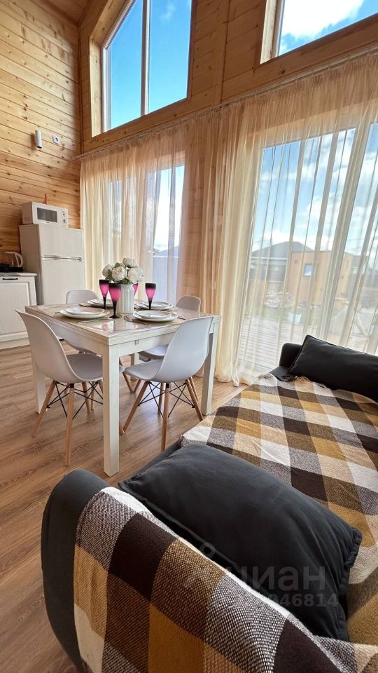 Комната кухня-гостиная со вторым светом на первом этаже — диван, раскладывающийся в 2-спальную кровать.